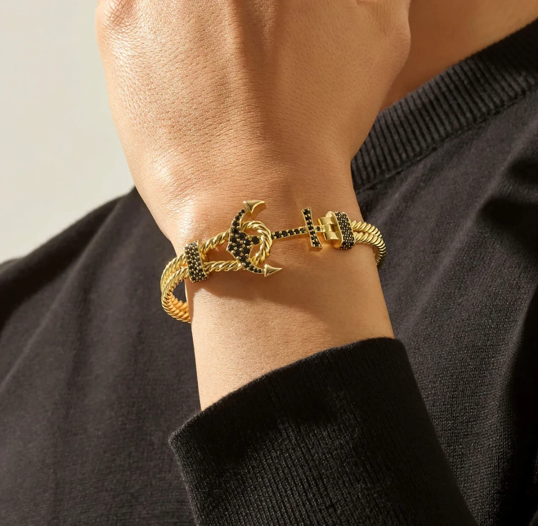 Twined Solid Anchor Bangle Bracelet for Men, 925 Sterling Silver/ 22kt Micron Gold Plated Silver Bracelet| With Certificate of Authenticity and 925 Hallmark