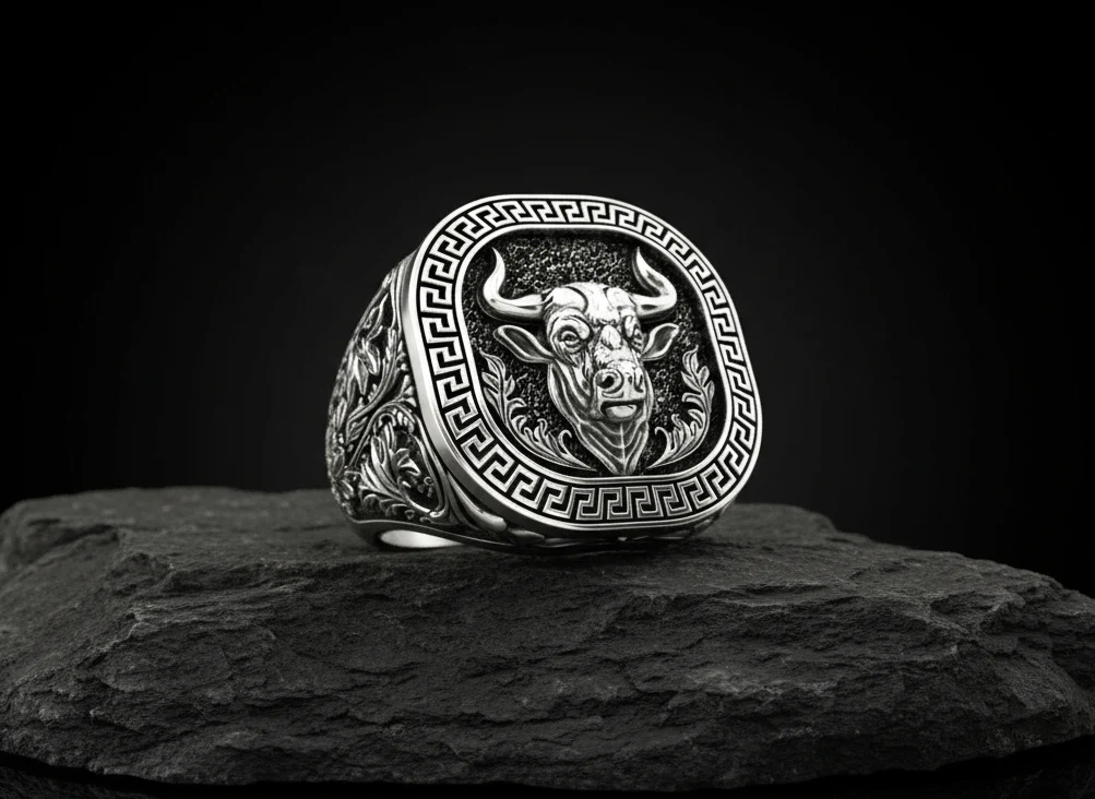 - PRODUCT DETAILS: This Exclusive 925 Pure Sterling Silver Ring is an Unique Taurus Zodiac Designed Style Men Ring. Designed for ALPHA MEN