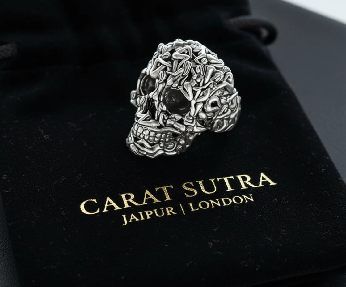 -70%RARE PRINCE by CARAT SUTRA | Unique Designed Women's Body Skull Ring | 925 Sterling Silver Oxidized Ring | Men's Jewelry | With Certificate of Authenticity and 925 Hallmark—