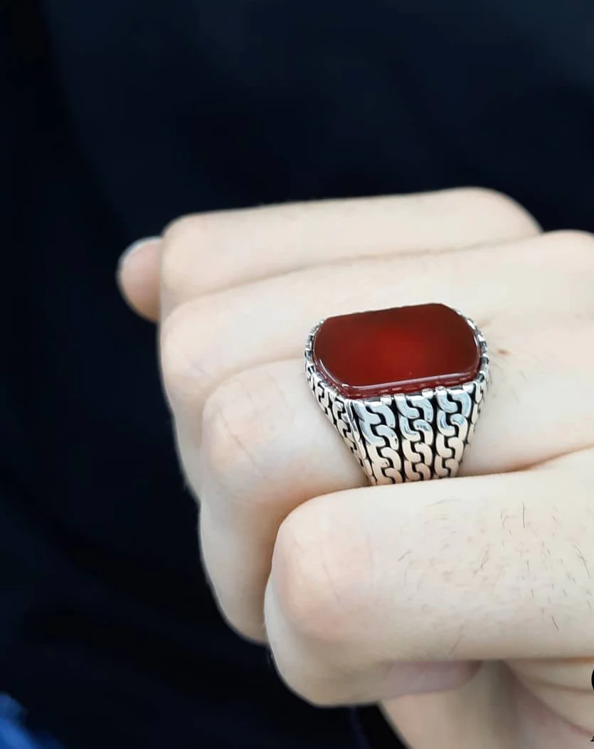 RARE PRINCE by CARAT SUTRA | Unique Turkish Gucci Style Ring with Natural Red Agate | 925 Sterling Silver Oxidized Ring | Men's Jewelry | With Certificate of Authenticity and 925 Hallmark